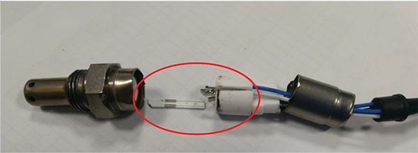 CRACKED LAMBDA ELEMENT (protective cap removed for examination) |